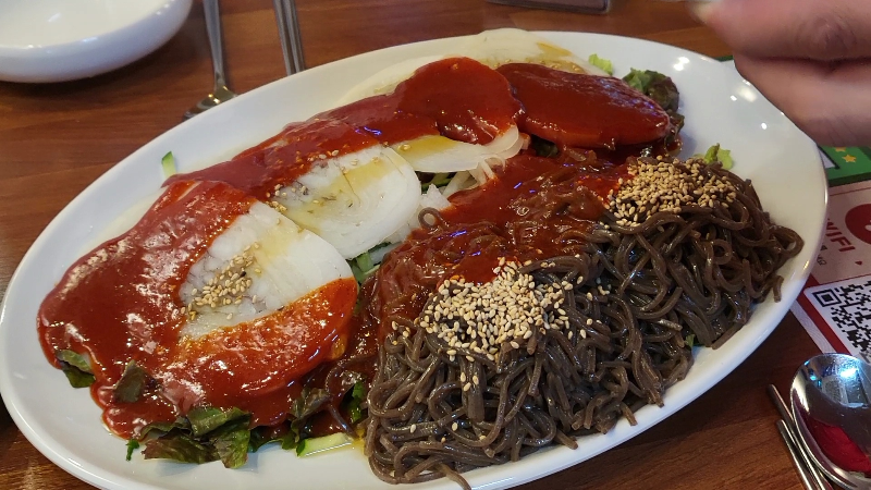 첫 방문에서 저는 한치모밀의 새콤달콤하면서 약간 매콤한 맛에 매료되었어요. 신선한 야채와 부드러운 한치가 어우러져 이색적인 맛을 선사했습니다. 식사를 마무리하는 비빔밥은 남은 야채와 함께 제공되어, 맛의 조화를 더욱 풍성하게 만들어줬죠.