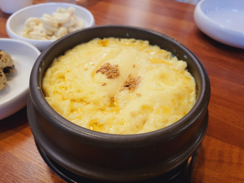 부산한치모밀은 가격 대비 훌륭한 양과 품질을 제공합니다. 특히, 부드러운 계란찜은 그 자체로도 충분히 만족스러운 맛이었어요. 저렴한 가격에 제공되는 이 추가 메뉴는 한치 메밀만 먹기에 아쉬움이 남는다면 꼭 주문하는것을 추천드립니다.