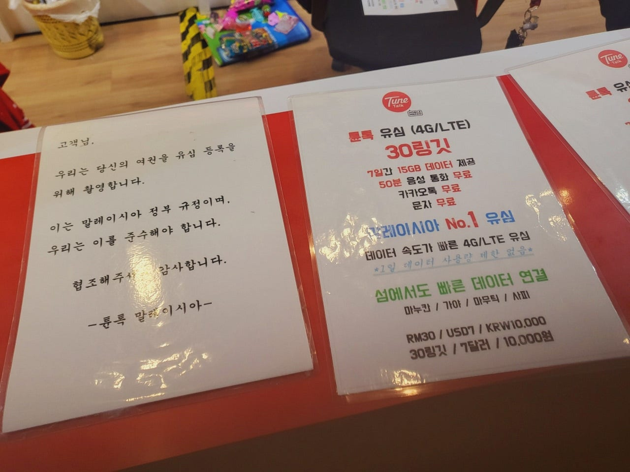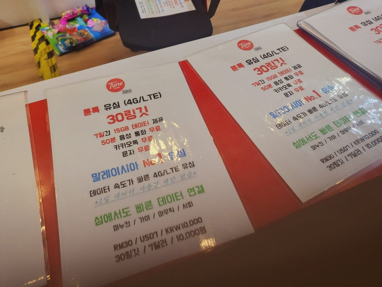 저는 3박 5일 여행으로 튠톡 유심을 구매하기로 했습니다. 30링깃 = 290원 x 30 링깃 = 약 9,000원 정도에 구매 했고 3박 5일동안 끊김없이 카카오톡과 데이터를 원활하게 이용했습니다. 중요 포인트는 아래와 같습니다.