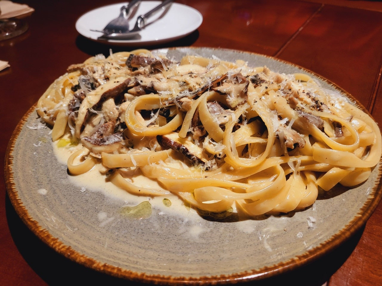 크리미한 소스에 다양한 종류의 버섯이 듬뿍 들어간 파스타였어요. 고소한 풍미와 쫄깃한 면발이 정말 잘 어울렸습니다. 특히 버섯의 식감이 살아 있어서 씹을 때마다 깊은 맛이 느껴졌어요.