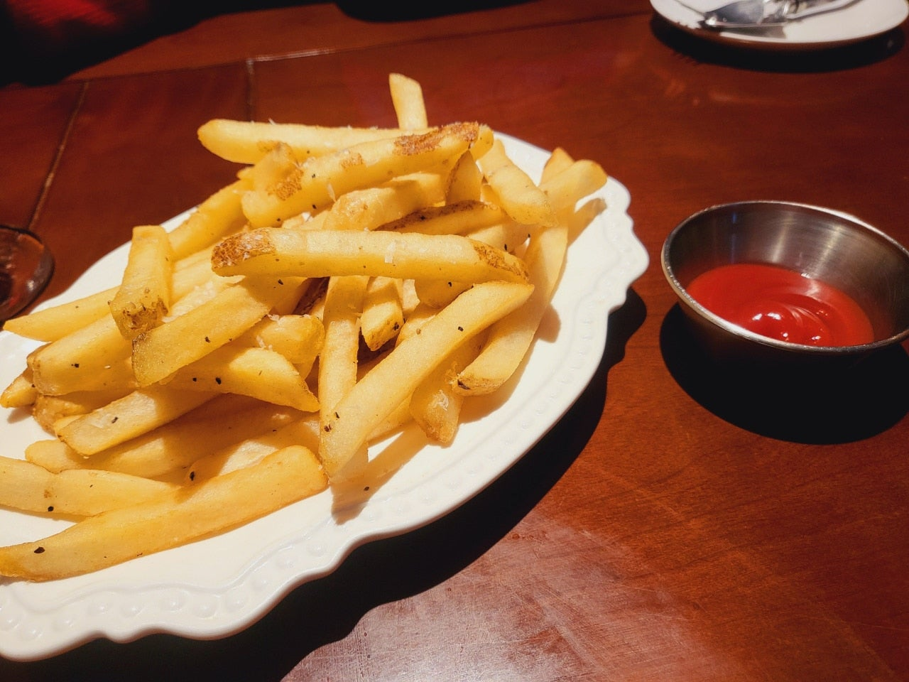 트러플 오일 향이 솔솔 나는 바삭한 감자튀김! 사실 감자튀김이야 어디서나 먹을 수 있지만, 여긴 트러플 오일로 풍미를 더해서 훨씬 고급스럽게 느껴졌어요. 데이트 분위기에 딱 맞는 사이드 메뉴였답니다.