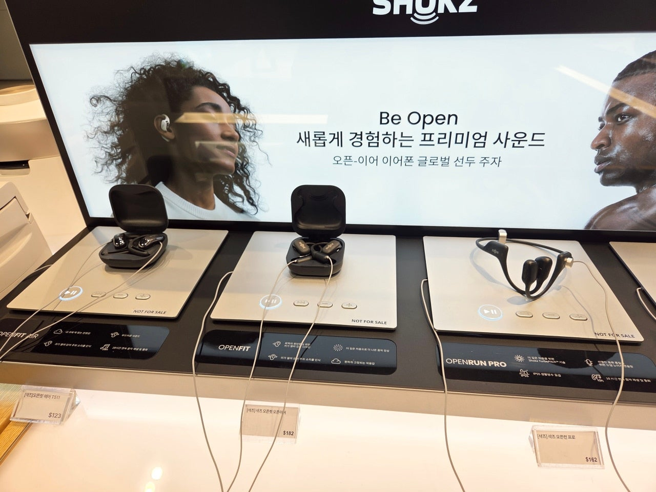 실제로 착용해보니 골전도 특유의 울림감이나 귀를 막지 않는 개방형 구조가 어떤지 즉시 확인할 수 있어 온라인 리뷰만으로는 느끼기 어려운 실사용감을 판단하는 데 도움이 되었습니다. 직원분도 정품 등록 방법, A/S 정책, 면세가 적용 시 가격대 등을 친절히 안내해주셔서 구매 결정이 훨씬 수월했습니다.